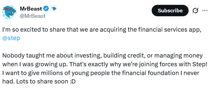 Beast Industries, the entertainment company founded by YouTuber Jimmy “MrBeast” Donaldson, is acquiring Step, a mobile banking app focused on teenagers and young adults, marking its most significant push into finance to date. In a post to X on Monday, Donaldson said the motivation behind the acquisition was to equip young people with the tools…