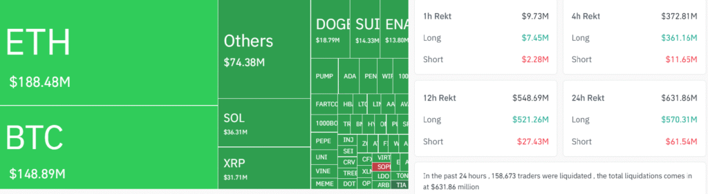 Crypto markets experienced a sharp bout of volatility over the past 24 hours, with more than $630 million in leveraged positions liquidated across exchanges. The bulk of the damage came from longs, which accounted for over $580 million of total liquidations, as traders were caught offside during an abrupt intraday sell-off. Bitcoin (BTC) dropped to…