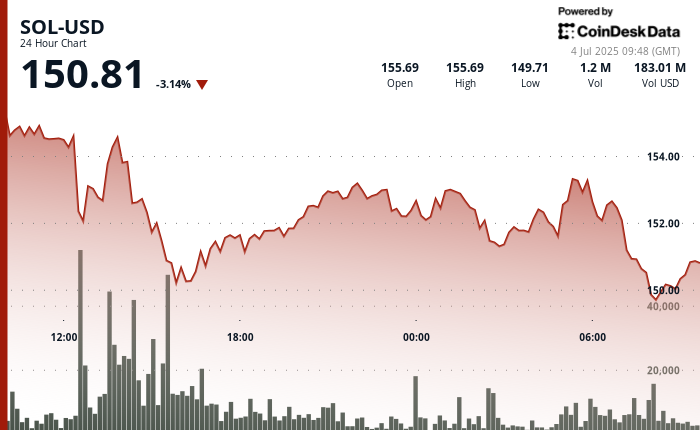 Solana declined 3.36% over the past 24 hours, retreating from $155.69 to $150.81, according to CoinDesk Research’s technical analysis model, amid broader market pressures, even as institutional developments in Asia signal growing momentum for the blockchain, One of Japan’s most digitally progressive banks has launched a new initiative that could expand real-world applications for Solana’s…